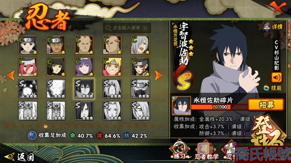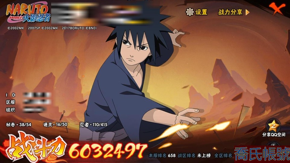【OBHXDNK924442】戰鬥力:603W+;段位:暗部2階;本服排名:658;戰區排名:未上榜;VIP8級;S忍7個;A忍23個;通靈獸16個;S忍:傳說中的三忍自來也,須佐能乎宇智波鼬,忍界大戰艾,波風水門,木葉創立千手柱間,舞之豪傑自來也,穢土轉生解宇智波斑;A忍:邁特凱,猿飛阿斯瑪,幹柿鬼鮫,疾風傳我愛羅,須佐能乎宇智波佐助,宇智波泉奈,忍界大戰日向寧次,最終章日向雛田,幻之真容旗木卡卡西,青年波風水門,五代目水影照美冥,穢土轉生桃地再不斬,忍界大戰土臺,不緣,曉大蛇丸,緋流琥蠍,蠍,宇智波鼬,迪達拉,穢土轉生迪達拉,飛段,死司憑血飛段,桃式顯現漩渦博人;通靈獸:忍犬,藍蛇,砂之守鶴,蛤蟆吉,忍龜,蛤蟆文太,鐮鼬,熊貓,猿魔,山椒魚,蜃,蛤蟆仙人,蛞蝓,鮫鯊,蛤蟆健,烏鴉;時裝:百戰宇智波鼬須佐能乎,百戰波風水門,蜀面豪傑舞之豪傑自來也,血霧怪人幹柿鬼鮫,緋櫻綻放春野櫻百豪,熊貓少女天天峨眉宗師;【728】【蘋果QQ】