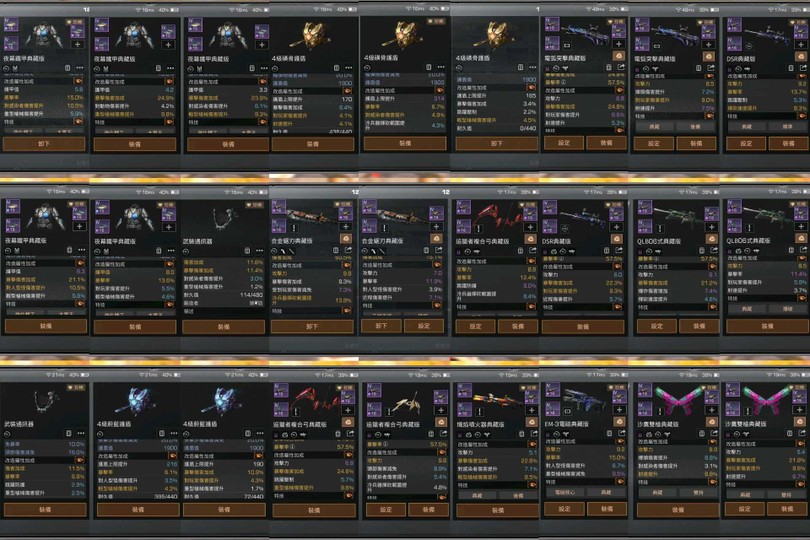 安卓號簡單一服,可馬上改名,狙擊腰帶齊全,配件一個15其他全16 基因大小節點全滿。可做典甲典刀典盾典噴火。圖片上無人機a、b版都是典藏合的,只打特訓所以六台耐久都790以上。27件裝備的圖是已經拆封的,12件裝備的圖是還沒拆封的,12件裝備右下的狙在小號裡。槍械號裡鈦合金工程塑料都100多個。引繼內有主號、一隻槍械、一隻護甲,槍械號能做典步槍,護甲號能做典甲。