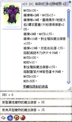 若裝備的鎧甲為A階級,且基本屬性SPL每+15時,全屬性魔法傷害再+1%,S.MATK再+1。