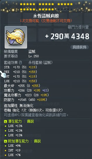 【今日最新🔥】永恆盜賊肩膀.永恆.肩膀.25星.白5.雙傳.39%.大雙.LUK.%幸運.盜賊