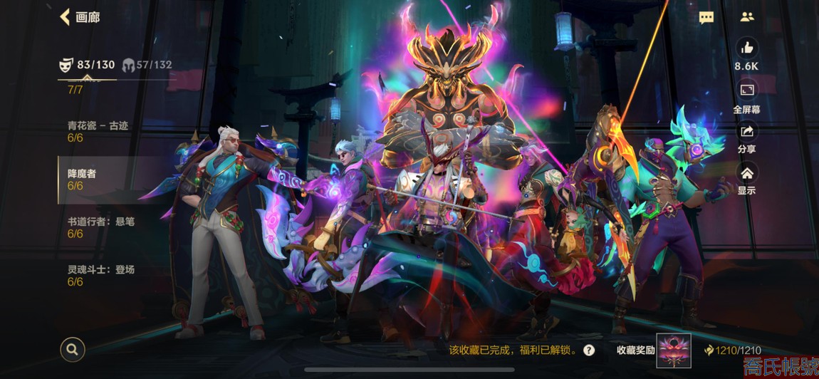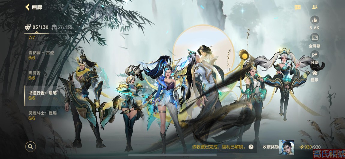 【11等】段位:璀璨鑽石,皮膚總數:644,終極皮膚:尋道世尊永恩;臻藏皮膚:臻藏御風墨