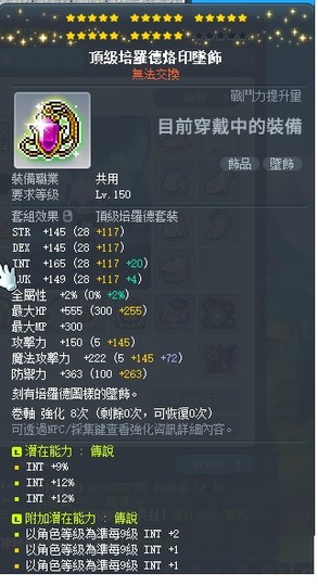 【頂級培羅德烙印墜飾】25C33%智附加+2+1+1B卷