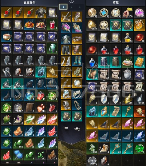 背包與倉庫雖未清理但滿載珍貴道具與材料,資源豐厚。
