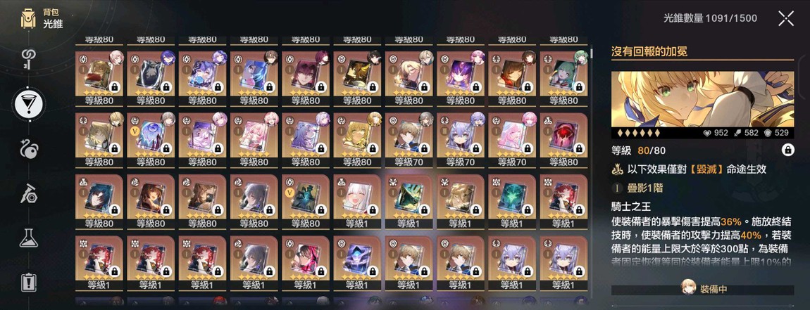 【女、70等、1金角、1金專】記憶戰艦多滿命多體系遐蝶6+1Saber6+1黃泉6+1流螢6+1破百金