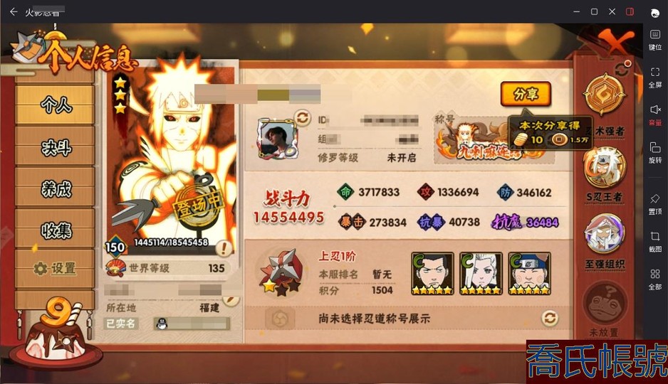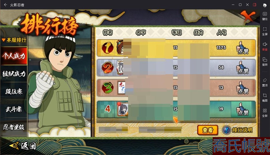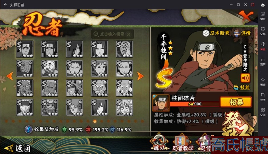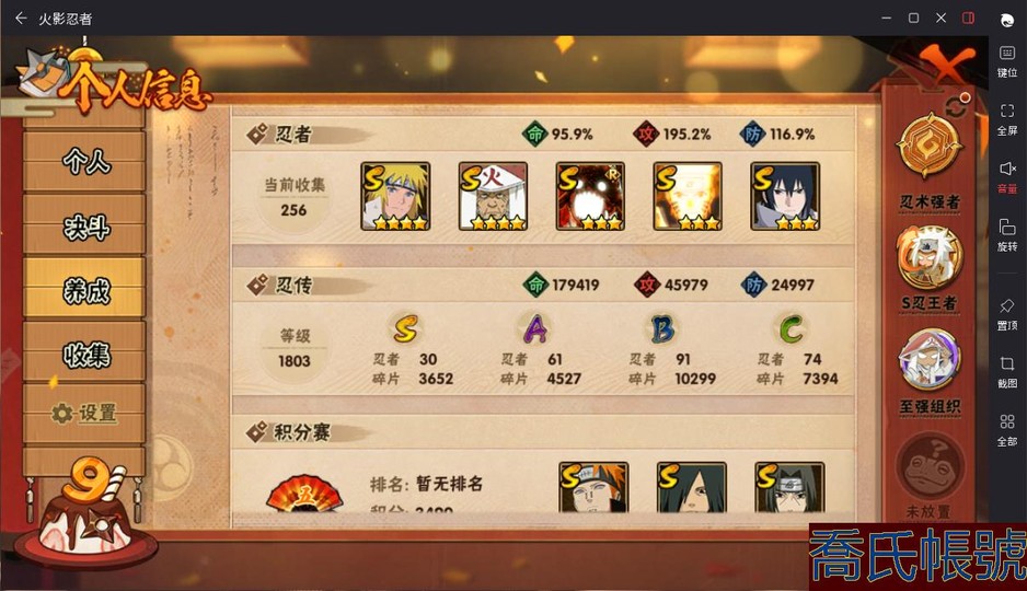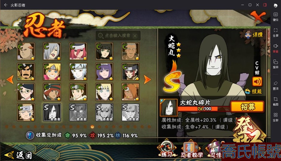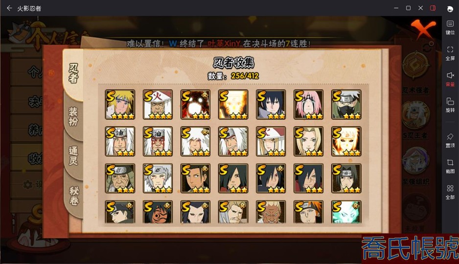 【11等】VIPV14級;S忍29個;A忍59個;通靈獸27個;S忍:傳說中的三忍自來