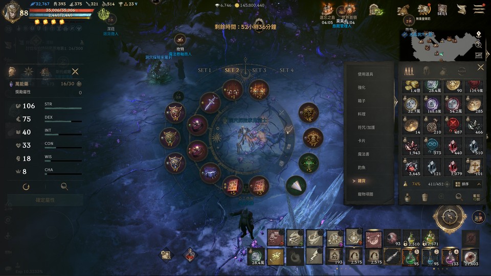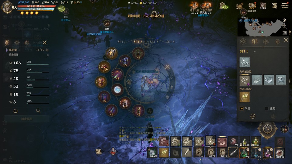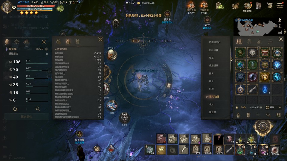 咒語:1金技(特殊攻擊)、4紫(降靈術極、陽氣吸收極、反技擊、赤月鏡),紅全滿。
