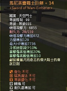 馬尼劍鬥一套+13 副摩好屬 武器+14 可小議