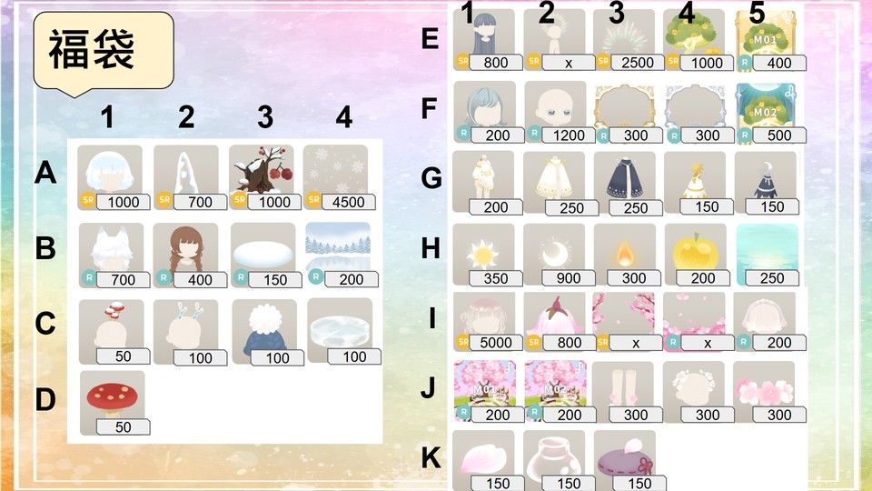 標價-漫遊.樂透.福袋.創作者/格萊/聯名商店(雪花.櫻花.後光