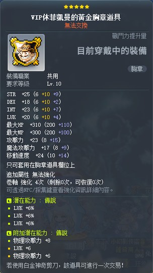 【VIP休菲凱曼的黃金胸章道具】雙傳頂%幸VIP胸章副属14攻