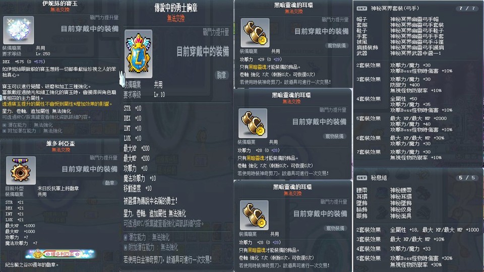 17星神秘武/R捲/烏勒斯30B寶珠/全過15星神秘裝/17星神秘飾品組/物攻飾品捲/25攻活動戒4顆/傳說的勇士胸章/寵物物攻捲/100攻心臟/怪物公園勳章/封印創世武器