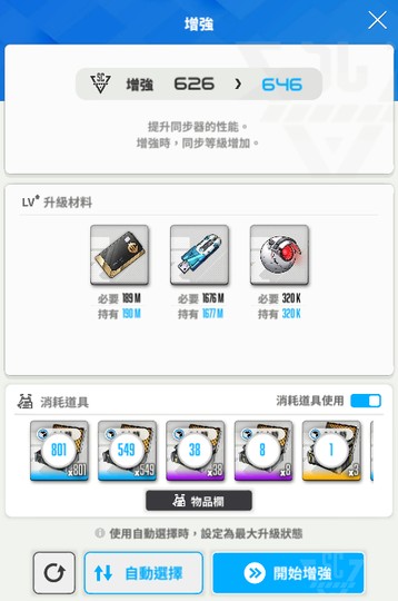 同步器等級為626,資源全開後就可以升到646(圖2)