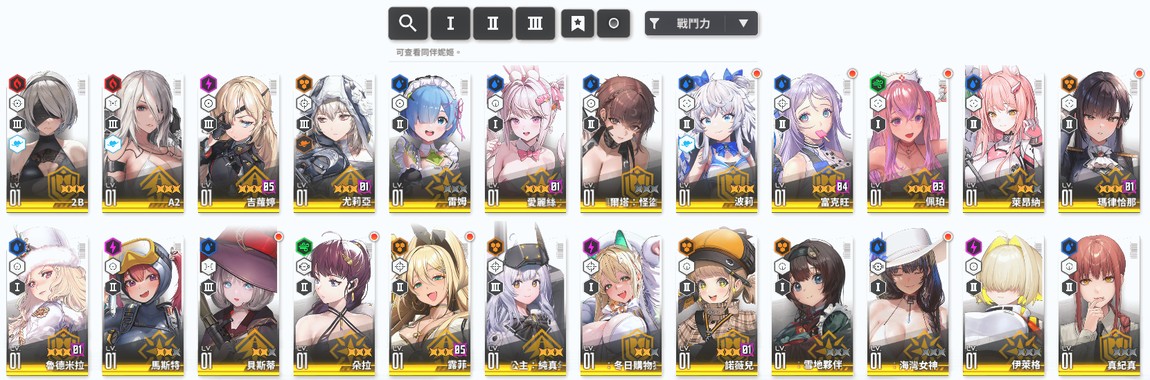 12/4 更新等級、時裝、資源 、擁有及缺少腳色