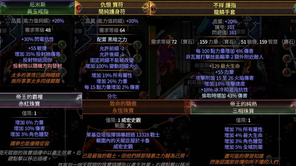 技能珠寶太多就不附上 都是21 20 覺醒技能 5 20(含覺醒多打 多投)