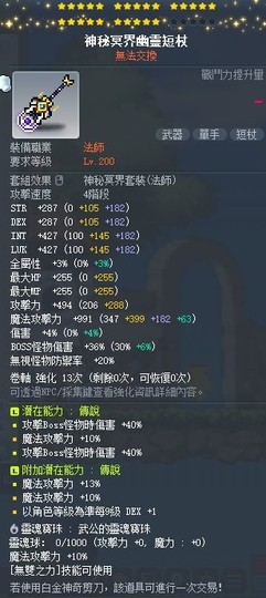 【神秘冥界幽靈短杖】25星 10%魔攻 武公 80%BOSS+10%魔攻 雙傳說 23%魔攻