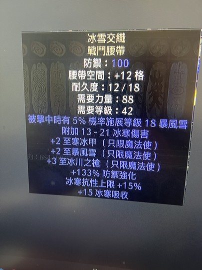 冰川之槍冰河傑瑞德之石+3冰寒技能+10高施+2暴風雪+2寒冰甲2洞已鑲死冰*2都-5+5