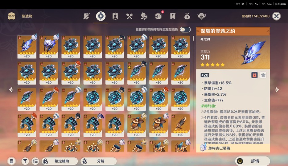 五星角色聖遺物&常用四星(ex行秋)評分較高(有興趣可在直播詳看)
