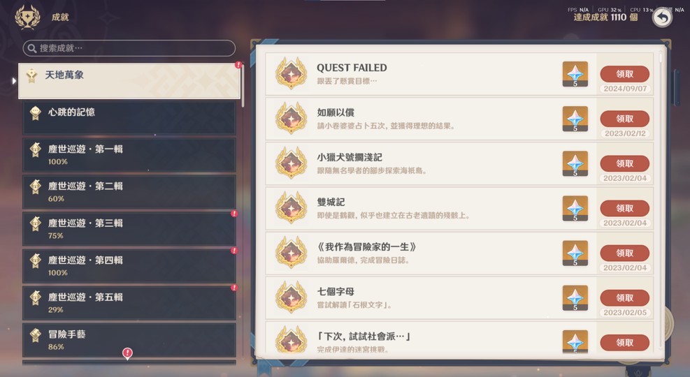 角色卡池已墊: 32 / 武器卡池已墊: 1 / 常駐卡池已墊: 12