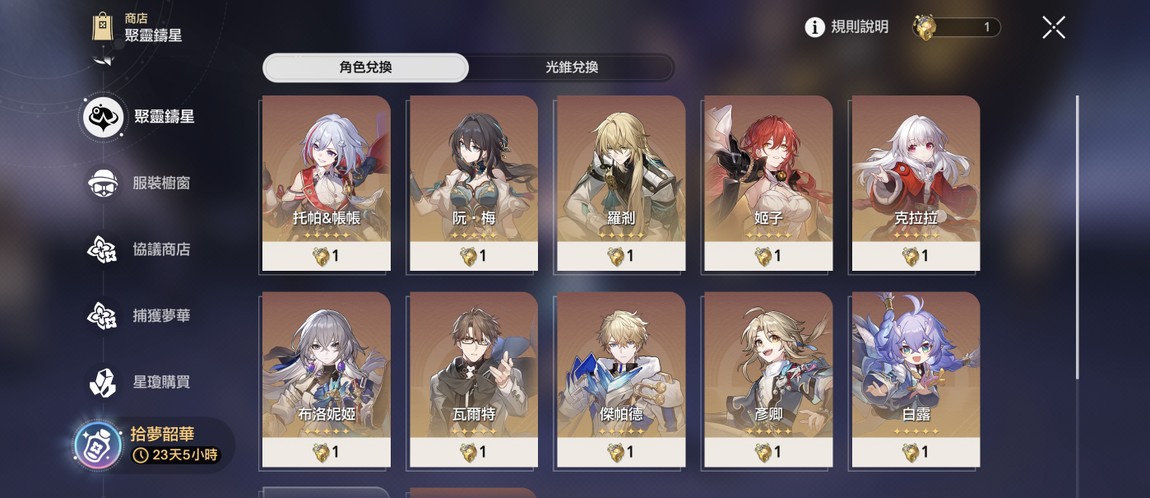 【男、70等、44金角、22金專】21白厄21昔漣10刻律阮梅20緹寶01流螢黃泉星期日saber多抽數多夢華