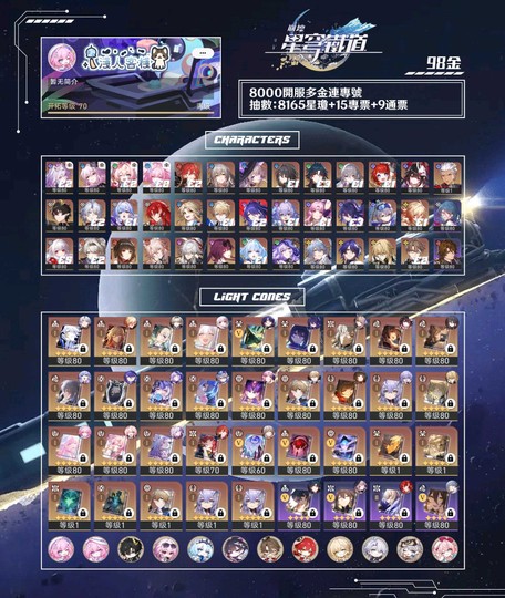 【女、70等、36金角、26金專】98金 關鍵命座/完整配隊/白厄/遐蝶/昔漣