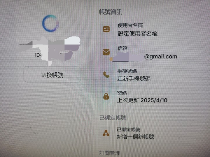 物品種類: 帳號