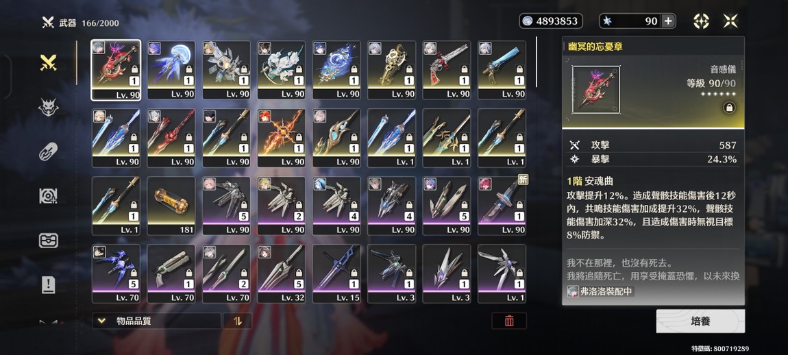 【80等、22金角、17金武】限定女角16 限定專武12 千咲已出 武器池已墊30抽
