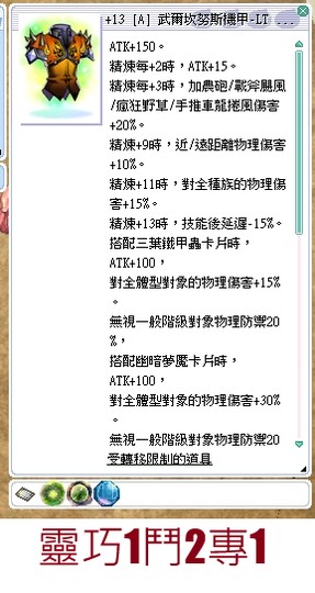 +13 A階 武爾 靈巧尼夫 鬥志 專一