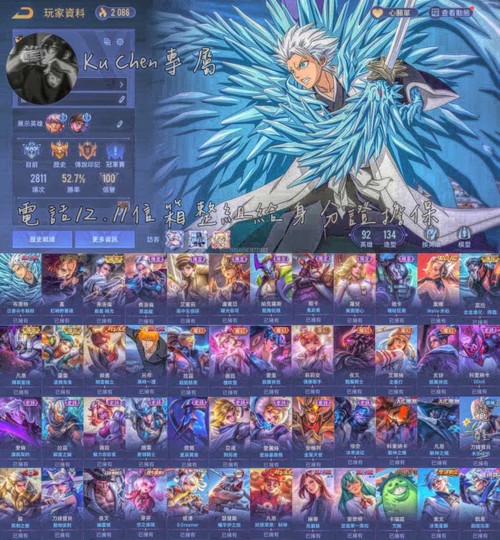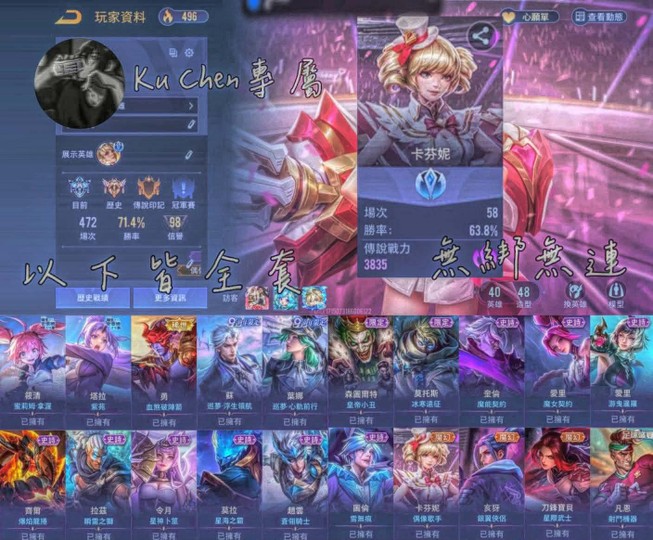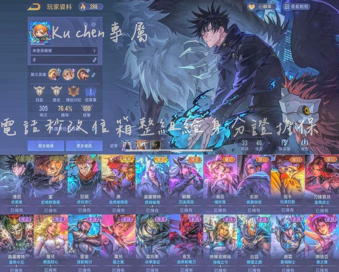 【Garena帳無綁無連、戰場傳說、V7、115英、300造】內有許多帳號
