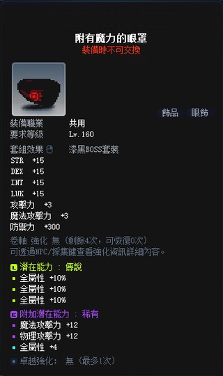 【附有魔力的眼罩】30%全屬性眼罩(頂%全屬眼罩 捷諾用 附加稀有