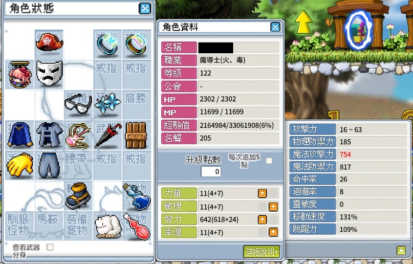 【122等、魔導士(火毒)_大魔導士】沒時間玩了便宜售!! 全智法 造型卡 寵技3格 包500格 保證全手動