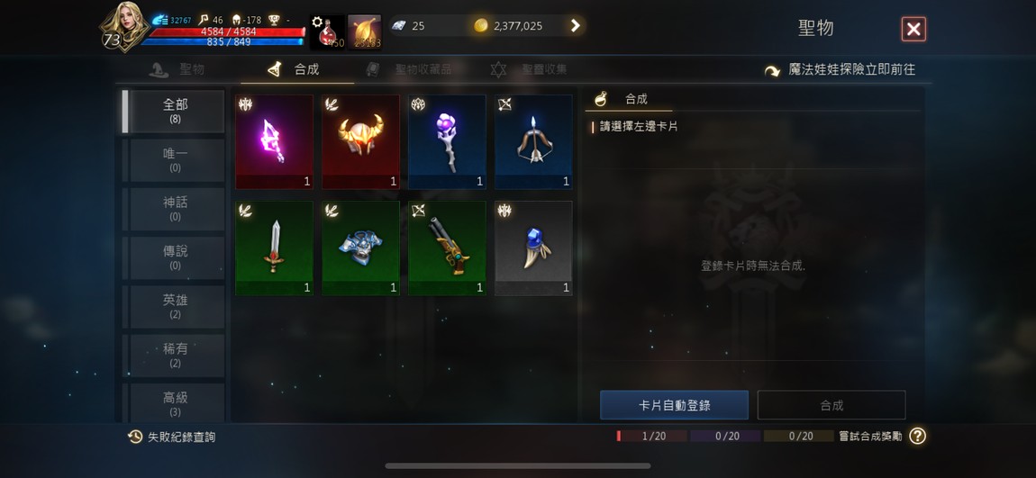 【神聖劍士、75等、紅騎士】紅騎士-狂襲2 75.智聖劍 紫娃聽牌
