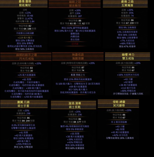 整套含裝備 技能 珠寶 藥劑 天賦 (可提供買家POB)
