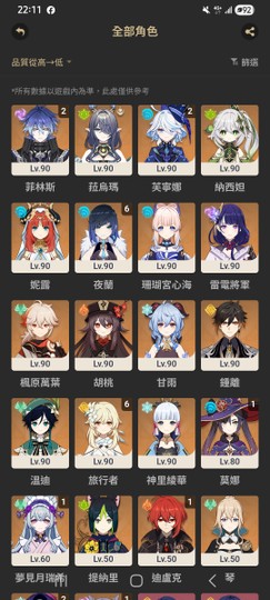 【女、60等、21金角、11金武】夜蘭6+1/菲林斯2+1/芙寧娜2+1+200抽資源