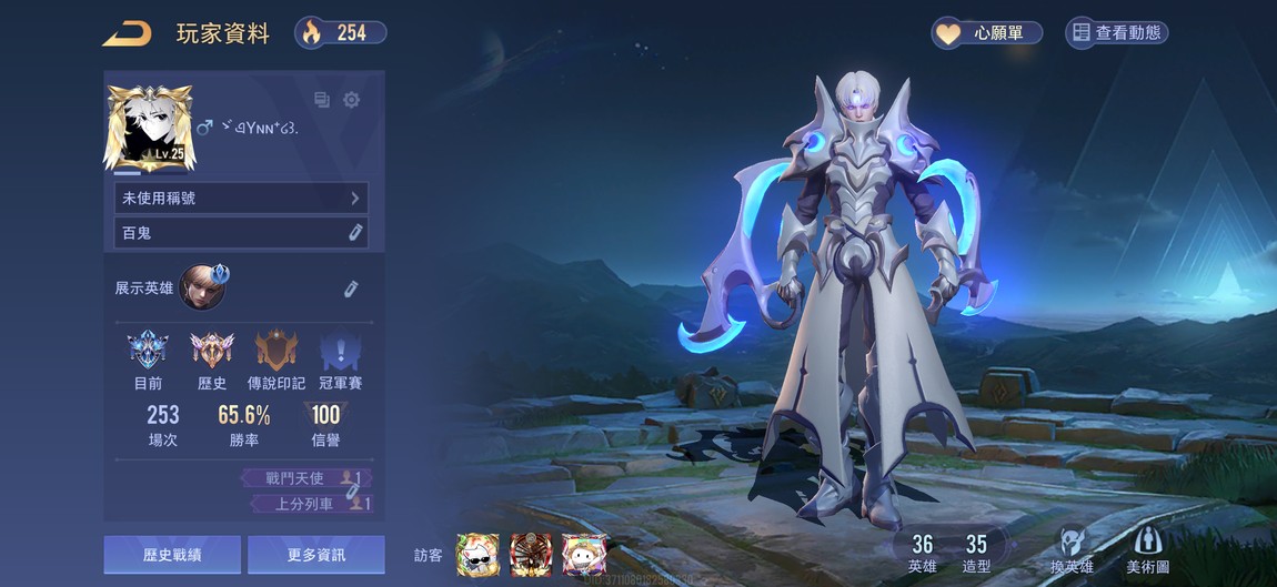 【Garena帳無綁無連、鑽石、V1、35英、36造】銀晝朔月 綁定無無