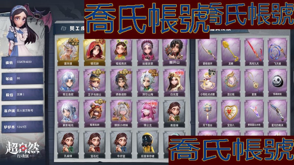 【OBCGATR403342】金皮2;紫皮12;道具21;累充2014元;金磚22;鏟鏟幣124.9萬;皮膚:逍遙-蓮華渡,巫鈴兒-鏡花辭,小黃-呱呱雨衣,愛麗絲-絲縷哀歌,零-搬開山,零-青雲逸歌,阿念-王子與騎士,逍遙-繡春逍影,逍遙-澤引山海,薇薇安-白光瑩,巫鈴兒-素影瑤光,莉莉-莓果陷阱,莉莉-除妖小師妹,莉莉-情公主;道具:刺刀-碧絡琅環,鏟子-龍鱗,桃木劍-鳳鳴九天,長鞭-飛天綾,長鞭-小狗蛇點點鞭,傳送按鈕-昆侖鏡,摸金符-紫霄,腰包-驚魂娃娃,腰包-月下蓮臺,腰包-寶劍八,短管獵槍-贊萌露比水槍,短管獵槍-星光的裁決,額外的揹包-飛花令,夜視儀-金絲眼鏡,夜視儀-心跳眼鏡,音響-鳴沙鼓,音響-happy貓,熒光棒-桃心-熒光棒-桃心,轉輪手槍-新星時代,電擊槍-甜蜜泡泡槍,急救包-薔薇物語;飾品:頭飾-櫻桃奶油布丁,頭飾-驚魂南瓜頭套,頭飾-火爆了頭套,頭飾-大蔥明頭套,頭飾-小財神豚豚頭套,頭飾-炙熱燒烤,頭飾-咬咬鯊頭套,頭飾-駝半仙頭套,頭飾-魚頭怪頭套,頭飾-烈焰紅唇頭套,頭飾-面具馬頭套,頭飾-哈士奇頭套,頭飾-嘻嘻頭套,頭飾-滑稽頭套,頭飾-呆滯頭套,頭飾-卑微頭套,頭飾-畫素朋克墨鏡,背飾-梵音蓮華,背飾-蝶戀花,背飾-雲夢之星,背飾-絨團小狐狸,掛飾-糖果守衛,掛飾-九色祥鹿,掛飾-釵頭鳳,掛飾-未竟樂園;動作:動作-鵬友搖,動作-心跳搖,動作-鴛鴦戲,動作-luvaboy,動作-刀馬舞,動作-舞臺中心,動作-要糖,動作-帶你逃跑吧,動作-舉牌,動作-KT貓搖,動作-律動迪斯科,動作-抬手;載具:載具-驚奇萬聖塗裝;工牌背景:卷珠簾,心同野鶴,復活的肖像,點點萌伴,粉嫩小海狸,冰晶宮,佛系小豚,情語塔,聖光之誓,童話扉頁;工牌動作:淨禪,元氣剪刀手,虔誠之姿;員工:小黃,愛麗絲,零,阿念,逍遙,薇薇安,巫鈴兒,莉莉,艾倫,愛德華,蘭;段位:王牌丨;等級:80;【巨人官方賬號】價格可以談的