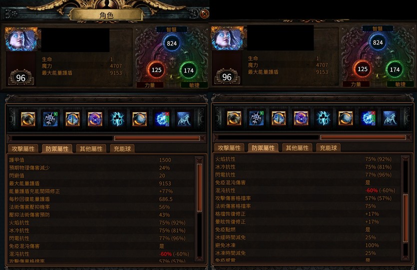 戰鬥常駐狀態 ES 9153、雙格 57/75、法壓56、三抗75/75/77/免疫混傷還有獵首