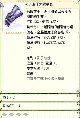 +10影子大師手套(smatk+4/cri+5)
