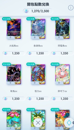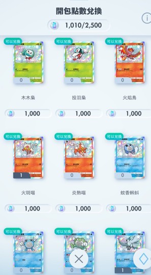 各包的兌換點數(pt)都沒用過,可兌換您想要的牌