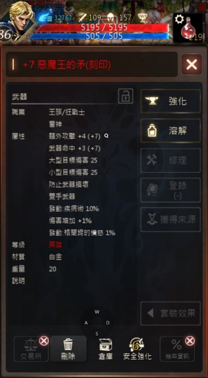 【雷神、86等、邪惡神殿】[新篇章2.0邪惡神殿]86雷神#退坑號#[+7惡魔王矛]#綠幣85w[5紅技]