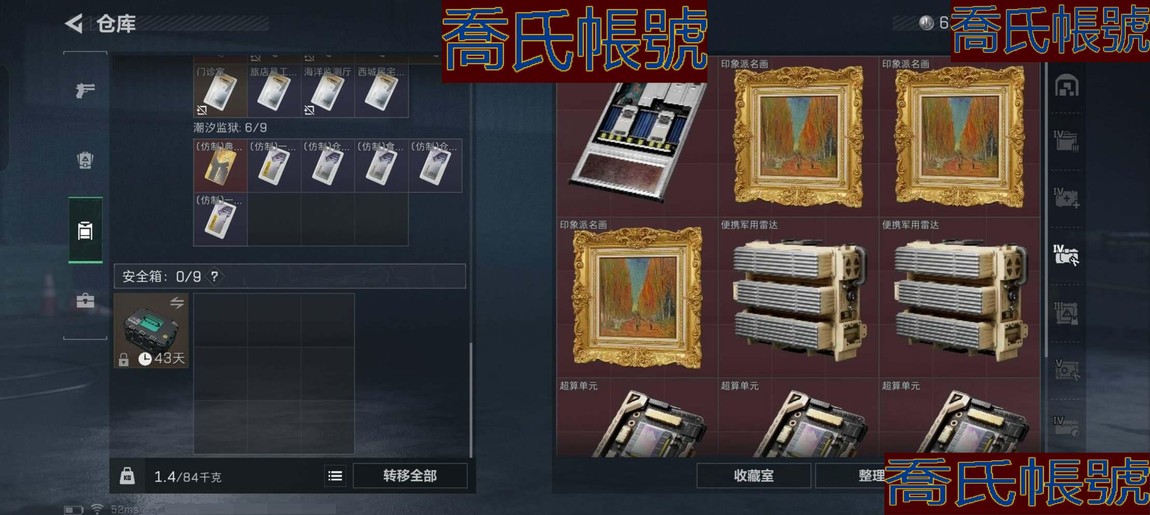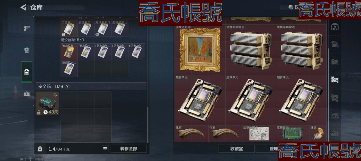 【OBSAGPG248942】總資產:495M,哈夫幣:6328W,武器皮膚:50,烽火60級:戰場36級:【安全箱】S7頂級安全箱;【特勤處等級】倉庫LV.9,靶場LV.6,訓練中心LV.7;【幹員皮膚】露娜黑天際線,駭爪維什戴爾,蜂醫送葬人無題密令,紅狼電鋸驚魂;【近戰武器】近戰武器-信條,近戰武器-黑鷹;【步槍皮膚】M4A1突擊步槍-蝕金玫瑰,M4A1突擊步槍-阿米婭,ASh-12戰鬥步槍-鵝鴨殺,AK-12突擊步槍-特斯拉線圈,SCAR-H戰鬥步槍-啟航,CAR-15突擊步槍-阿米婭,騰龍突擊步槍-撈點薯條,KC17突擊步槍-電鋸驚魂,AKM突擊步槍-林中獵手,QBZ95-1突擊步槍-曙光,QBZ95-1突擊步槍-星際探索,ASh-12戰鬥步槍-星際探索,M16A4突擊步槍-競賽選手,SG552突擊步槍-深海恐懼,SCAR-H戰鬥步槍-囚徒,G3戰鬥步槍-戰場英傑,ASVal突擊步槍-典獄官,騰龍突擊步槍-無垢;【衝鋒槍皮膚】UZI衝鋒槍-特斯拉線圈,SMG-45衝鋒槍-騎士,SR-3M緊湊突擊步槍-特斯拉線圈,勇士衝鋒槍-能天使-午夜郵差,QCQ171衝鋒槍-鵝鴨殺,MP5衝鋒槍-深海恐懼,Vector衝鋒槍-阿薩拉文明,Vector衝鋒槍-異域戰爭,SMG-45衝鋒槍-星際探索,SR-3M緊湊突擊步槍-荒野求生,勇士衝鋒槍-深海恐懼,MP7衝鋒槍-無垢;【射手步槍皮膚】SVD狙擊步槍-阿薩拉工藝,SVD狙擊步槍-暗夜獵手,SVD狙擊步槍-荒野求生,PSG-1射手步槍-無垢;【狙擊步槍皮膚】R93狙擊步槍-維什戴爾,AWM狙擊步槍-撈點薯條,SV-98狙擊步槍-林中獵手,SV-98狙擊步槍-囚徒,SV-98狙擊步槍-獵鱷行動,M700狙擊步槍-競技風,M700狙擊步槍-蝮蛇;【霰彈槍皮膚】725雙管霰彈槍-送葬人-無題密令,M1014霰彈槍-林中獵手,S12K霰彈槍-曙光;【輕機槍皮膚】QJB201輕機槍-鵝鴨殺,PKM通用機槍-蝮蛇;【手槍皮膚】93R-撈點薯條,沙漠之鷹-曙光;(資訊源於賣家釋出,實際資訊以驗號為準)【QQ登入】****(信條露娜猛攻號)烽火等級60+總資產494+現金六千多萬+信條+露娜天際線 駭爪維什戴爾+特勤9倉6負滿體+部門23322+9格安全箱,收藏室價值160m,安全箱級段位因賽季原因發生變化,以上號為準 【幹員外觀】:露娜-黑·天際線,駭爪-維什戴爾,蜂醫-送葬人·無題密令,紅狼-電鋸驚魂 【近戰皮膚】:近戰-信條,近戰-黑鷹 【傳說外觀】:M4A1突擊步槍-蝕金玫瑰,M4A1突