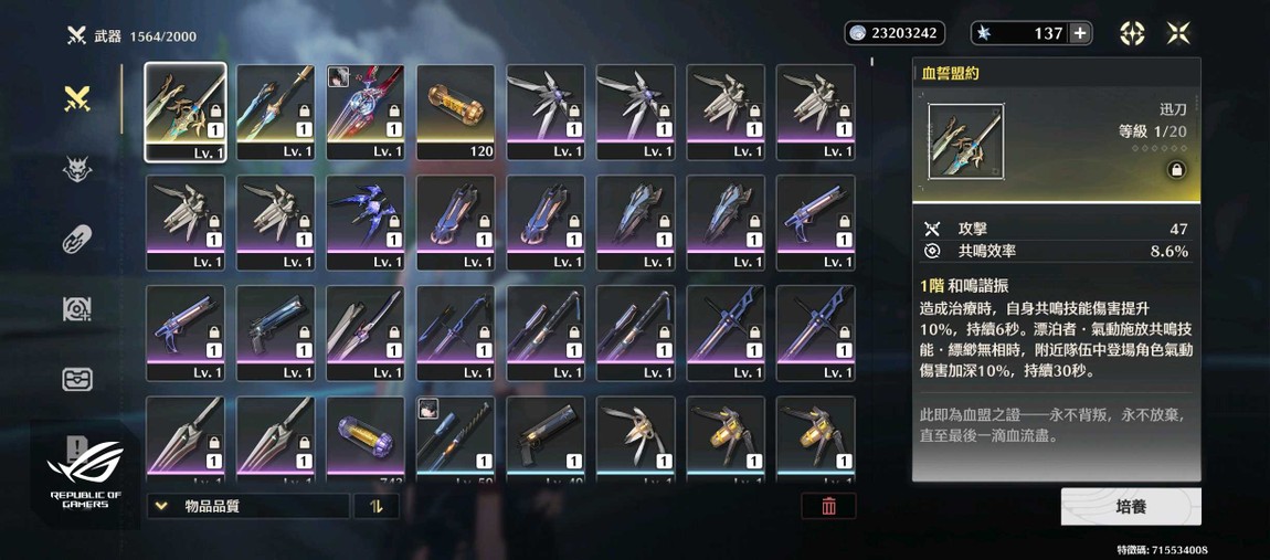 【43等、3金角、3金武】千咲三鏈 帶專武 價格隨便開 亞服