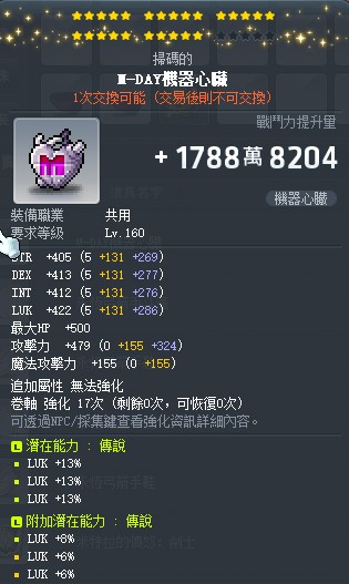 【M-DAY機器心臟】頂%幸MD/附加大三排866幸/白5/25星/均19攻/均16.8屬性/頂級捲軸