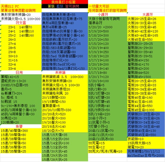 任何裝備沒打的皆可詢問