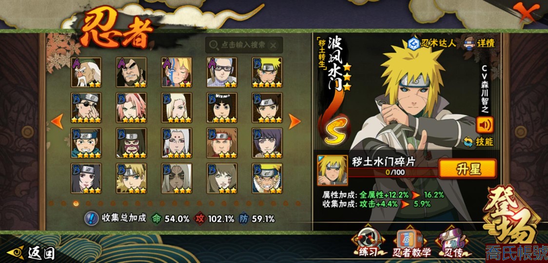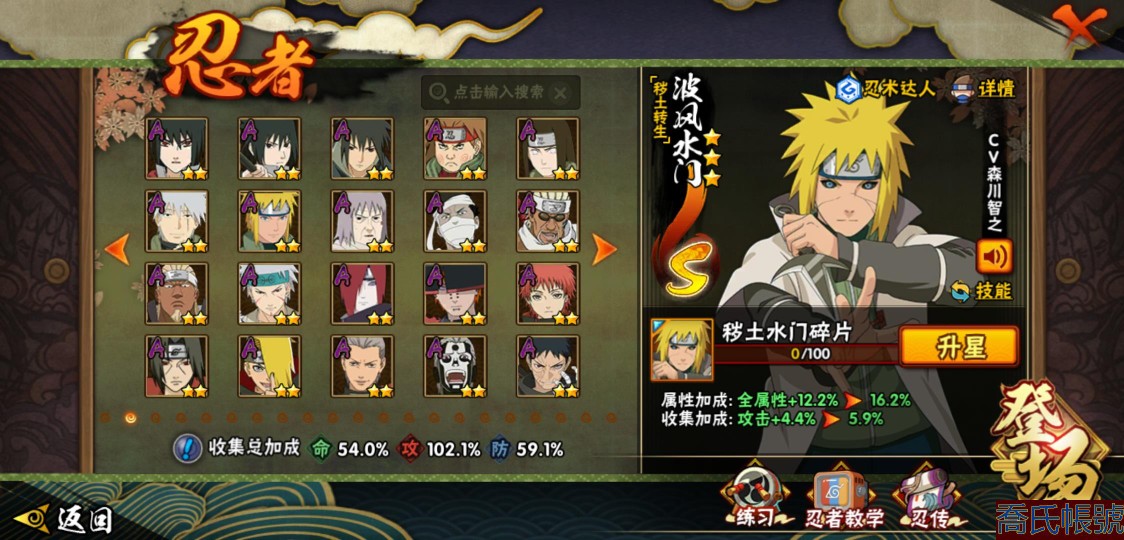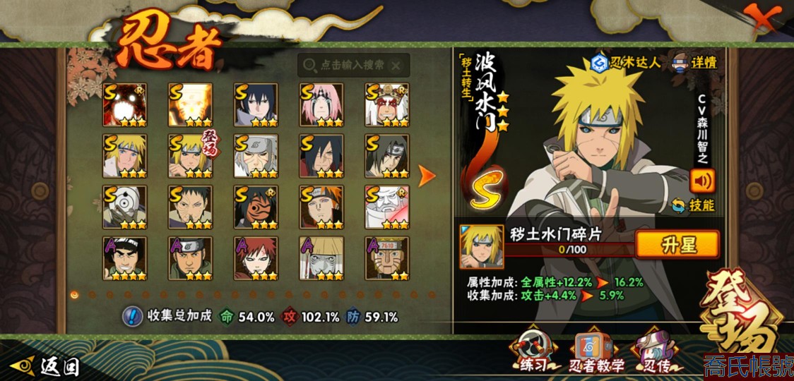 【OBHAWYM653542】戰鬥力:608W+;段位:暗部2階;本服排名:;戰區排名:;VIP10級;S忍15個;A忍29個;通靈獸15個;S忍:暴怒第六尾漩渦鳴人,九喇嘛連結漩渦鳴人,永恆萬花筒宇智波佐助,忍界大戰春野櫻,舞之豪傑自來也,波風水門,穢土轉生波風水門,穢土轉生千手扉間,穢土轉生解宇智波斑,須佐能乎宇智波鼬,白面具宇智波斑,忍界大戰宇智波帶土,紅夜之刃神秘面具男,天道佩恩,大筒木金式;A忍:邁特凱(4星),猿飛阿斯瑪(3星),疾風傳我愛羅(3星),幹柿鬼鮫(3星),初始形態機械鳴人,萬花筒寫輪眼宇智波佐助,須佐能乎宇智波佐助,宇智波泉奈,忍界大戰秋道丁次,忍界大戰日向寧次,幻之真容旗木卡卡西,青年波風水門,近松十人衛千代,漂泊武士桃地再不斬,奇拉比,青年艾,漂泊武士千手扉間,青年長門,漂泊浪客佩恩六道,蠍,宇智波鼬,迪達拉,飛段,死司憑血飛段,漂泊浪客宇智波帶土,俠隱江湖大野木,羈絆神農,桃式顯現漩渦博人,六代目水影長十郎;通靈獸:忍犬,藍蛇,蛤蟆吉,砂之守鶴,忍龜,鐮鼬,猿魔,山椒魚,蜃,蛤蟆仙人,鮫鯊,蛤蟆健,烏鴉,蛞蝓,蛤蟆龍;時裝:百戰佩恩天道,百戰波風水門,蜀面豪傑舞之豪傑自來也,百戰宇智波鼬須佐能乎,太極靈韻日向花火武當宗師,龍吟浪客千手扉間漂泊武士,緋櫻綻放春野櫻百豪,血霧怪人幹柿鬼鮫,熊貓少女天天峨眉宗師,龍的傳人李洛克截拳宗師,傳說的光芒波風水門;【3177】15s
