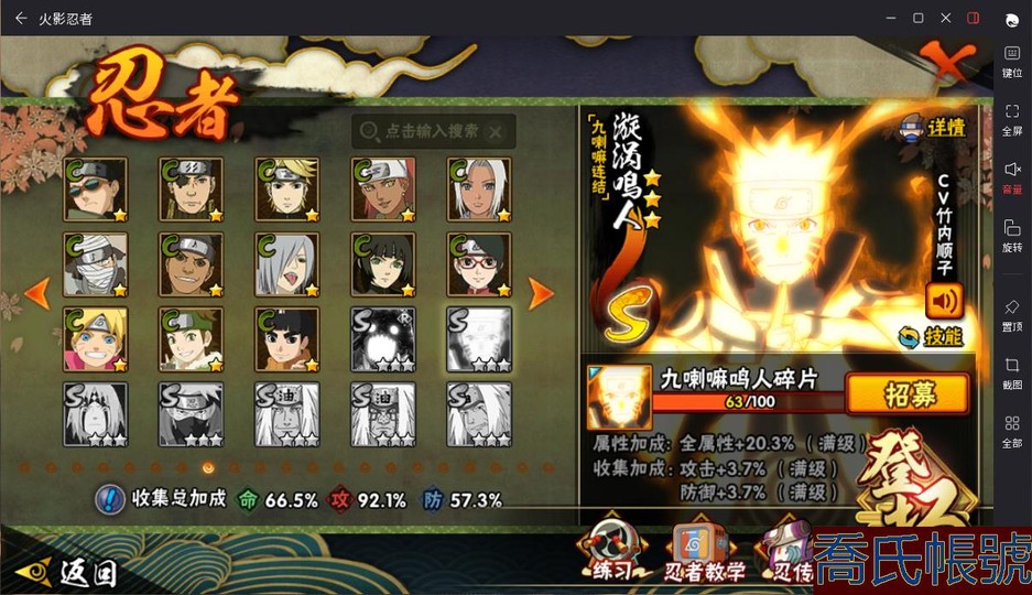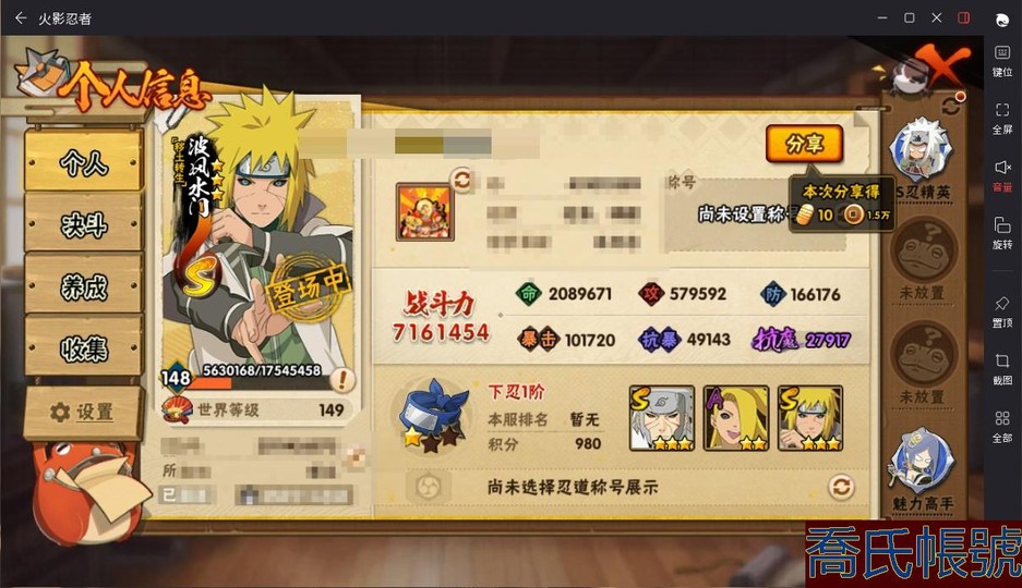 【11等】VIPV10級;S忍11個;A忍26個;通靈獸17個;S忍:天道佩恩,穢土轉