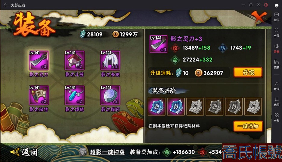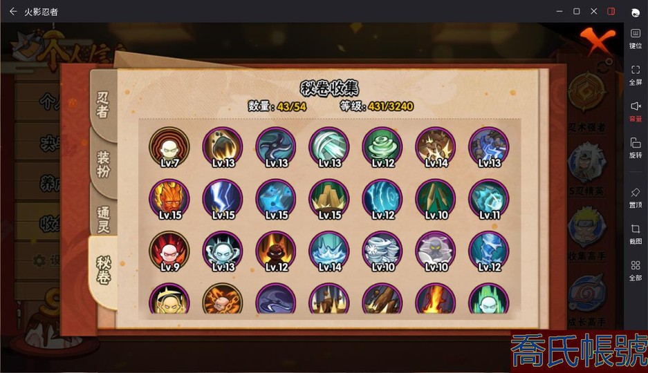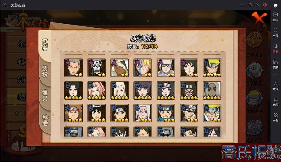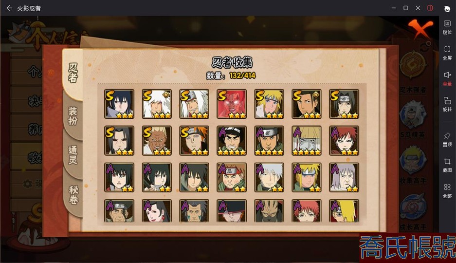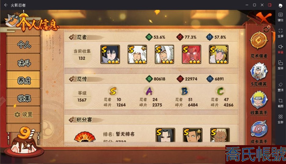 【11等】VIPV8級;S忍10個;A忍24個;通靈獸16個;S忍:傳說中的三忍自來也