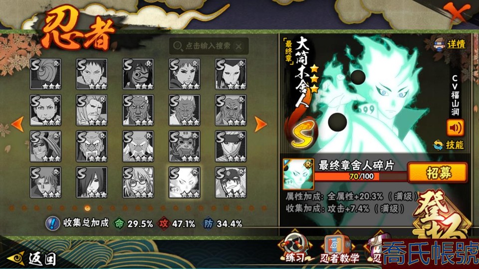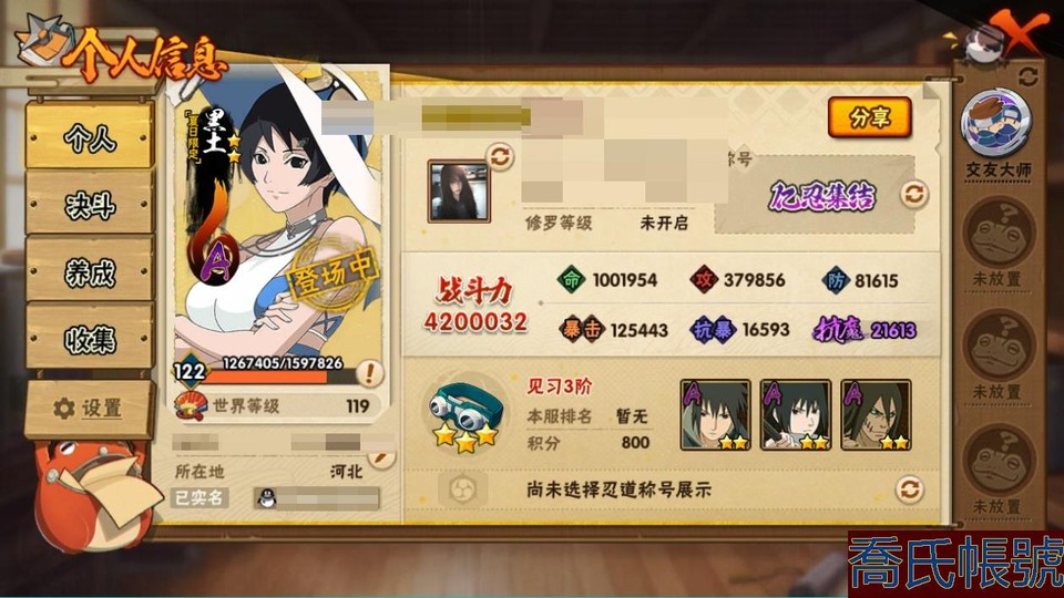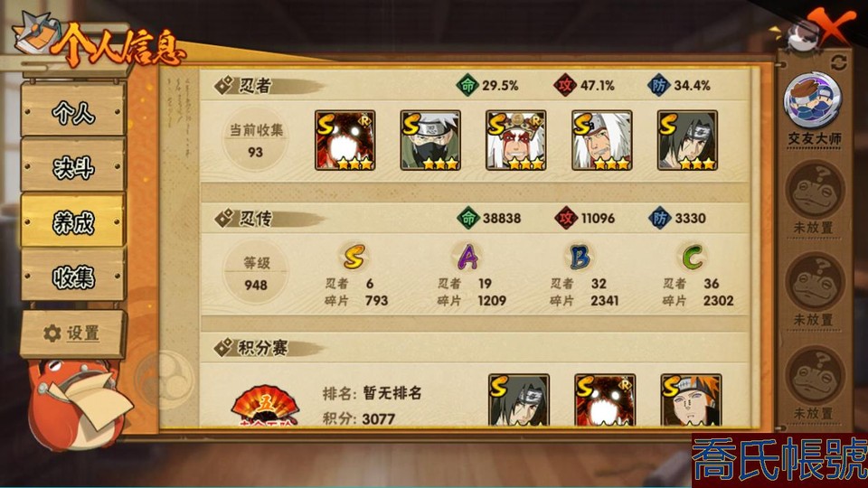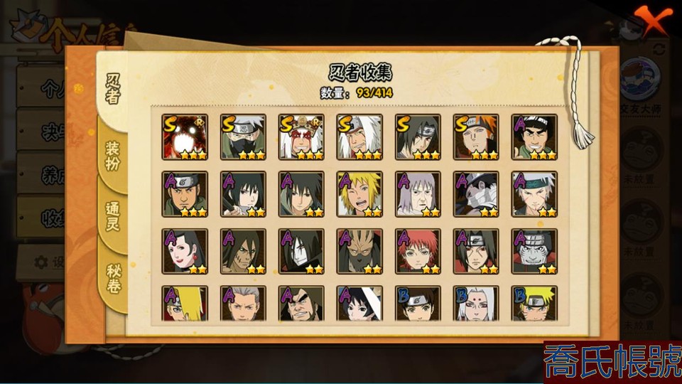 【11等】VIPV9級;S忍6個;A忍19個;通靈獸13個;S忍:傳說中的三忍自來也,
