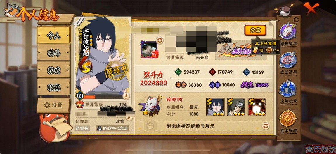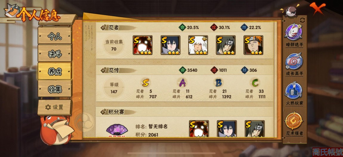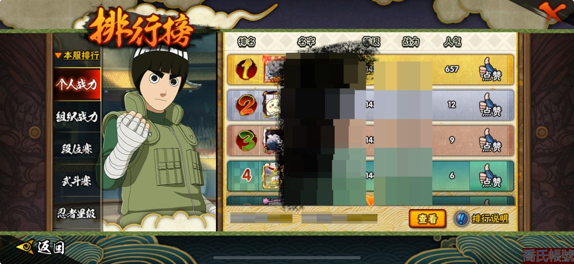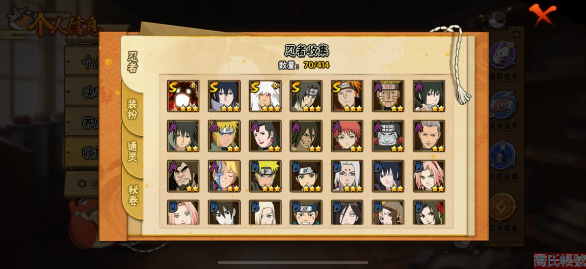 【11等】VIPV7級;S忍5個;A忍11個;通靈獸11個;S忍:天道佩恩,永恆萬花筒