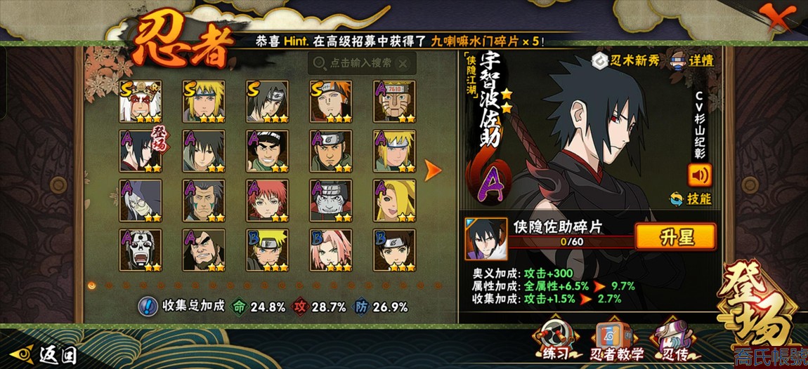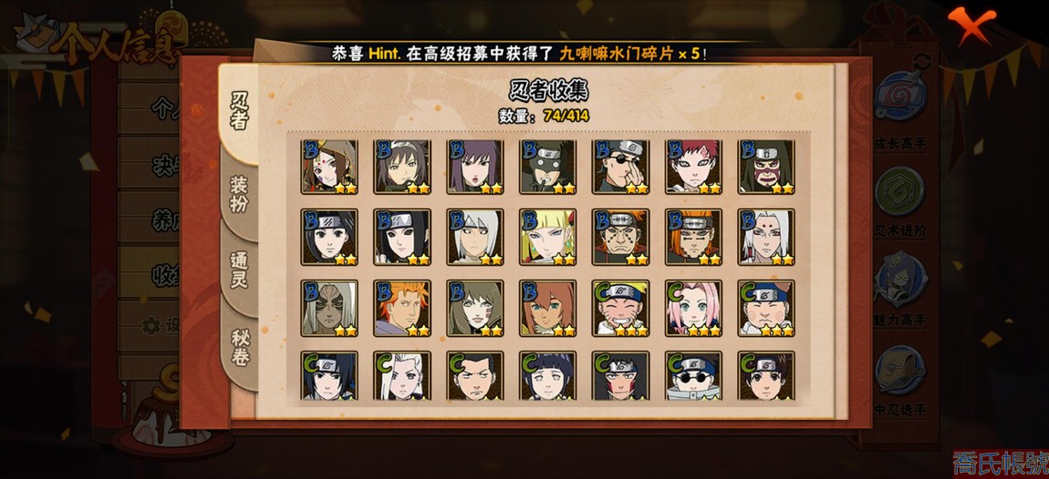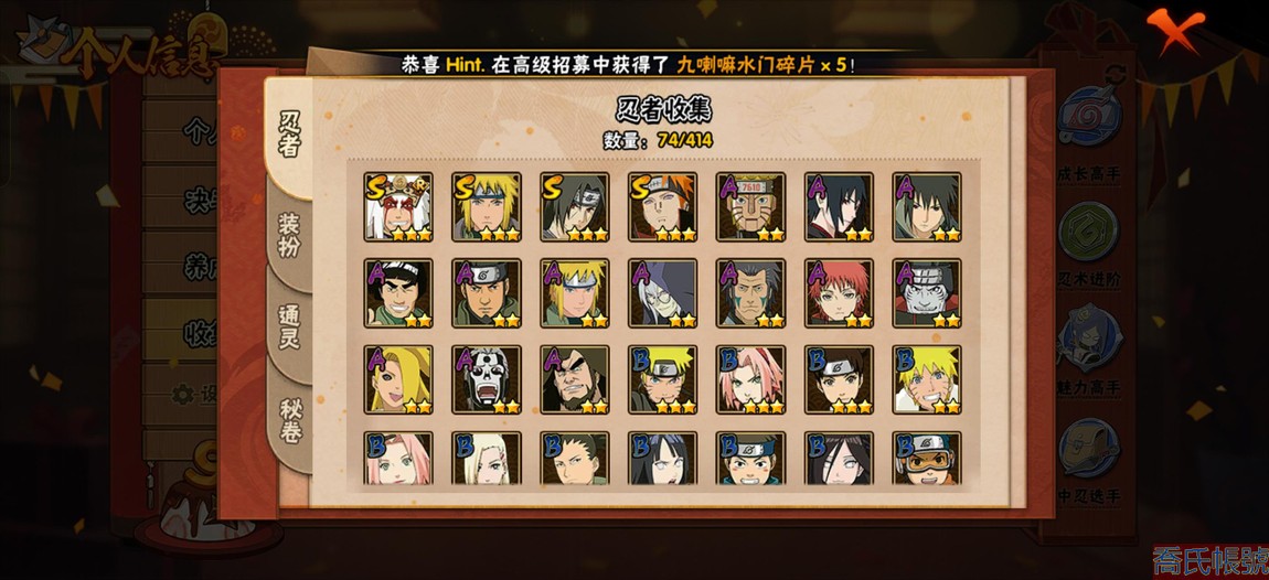 【11等】戰鬥力:3700000萬;VIPV10級;S忍3個;A忍12個;通靈獸15個