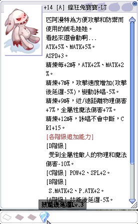 +14 A階 瘋狂兔寶寶-LT [1] (兔盾) LT 技能後延遲Lv.3
