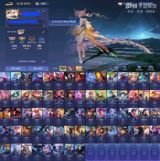 【Garena帳有綁定、星耀、V7、44英、71造】好綁卡芬妮新年 蛟翔簡 多新年